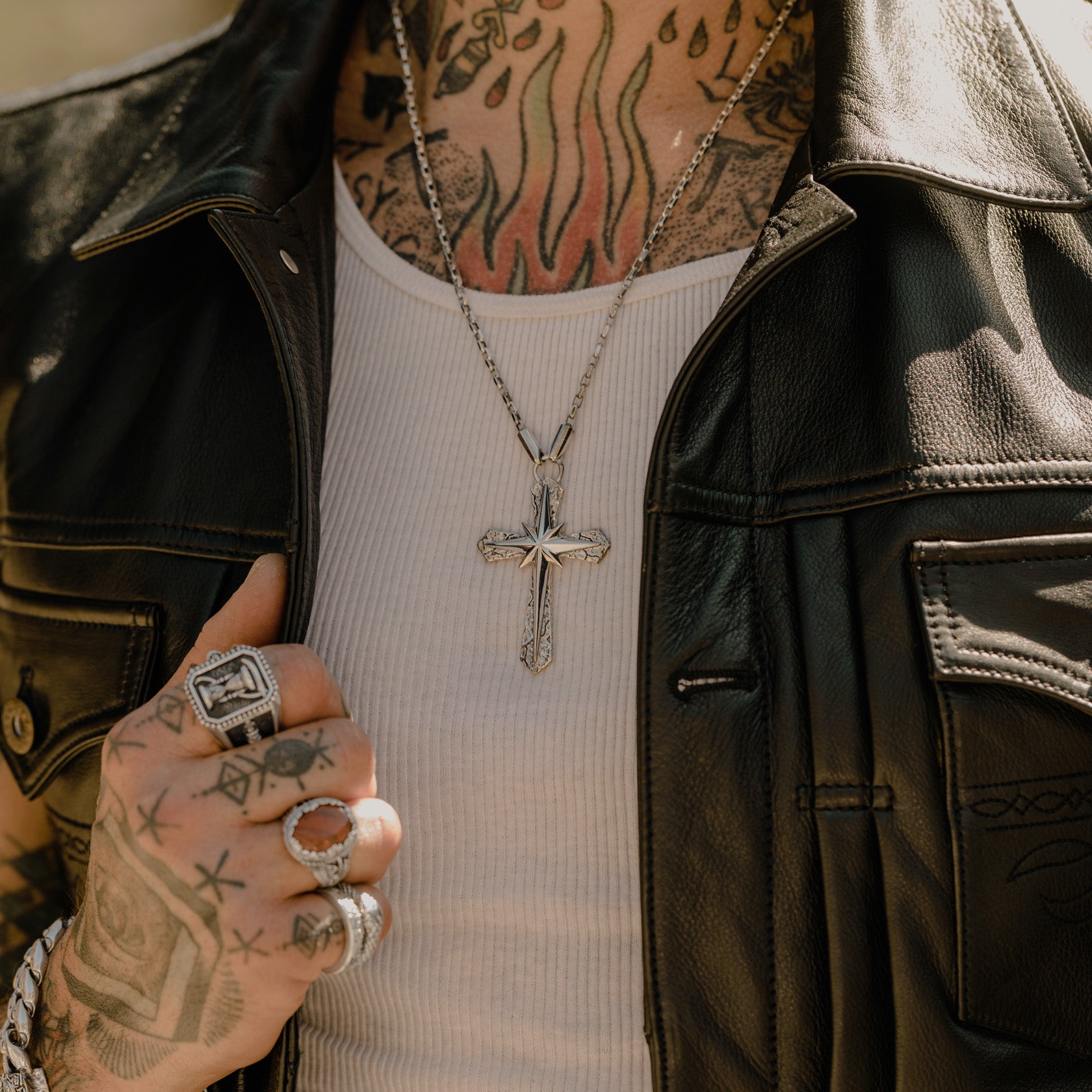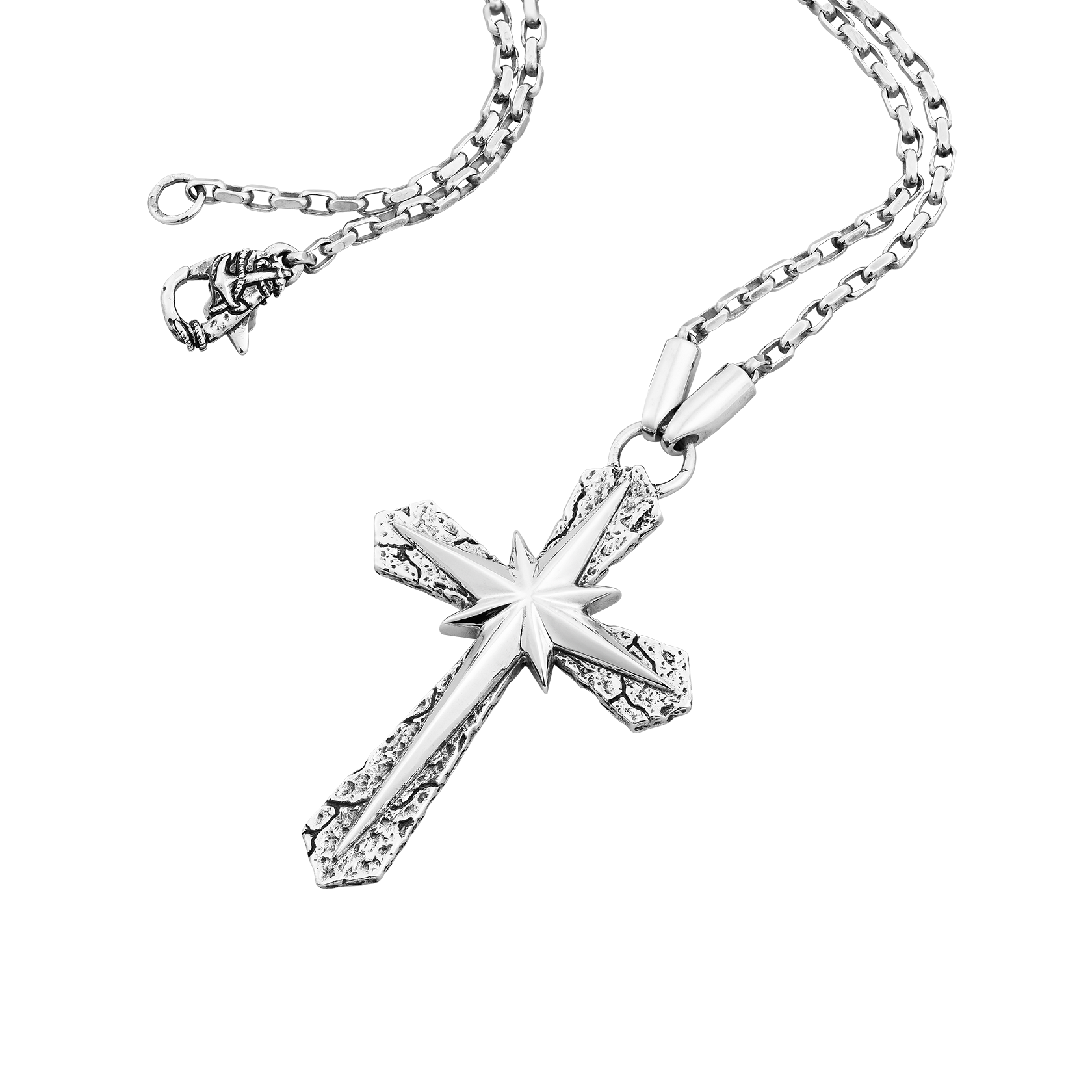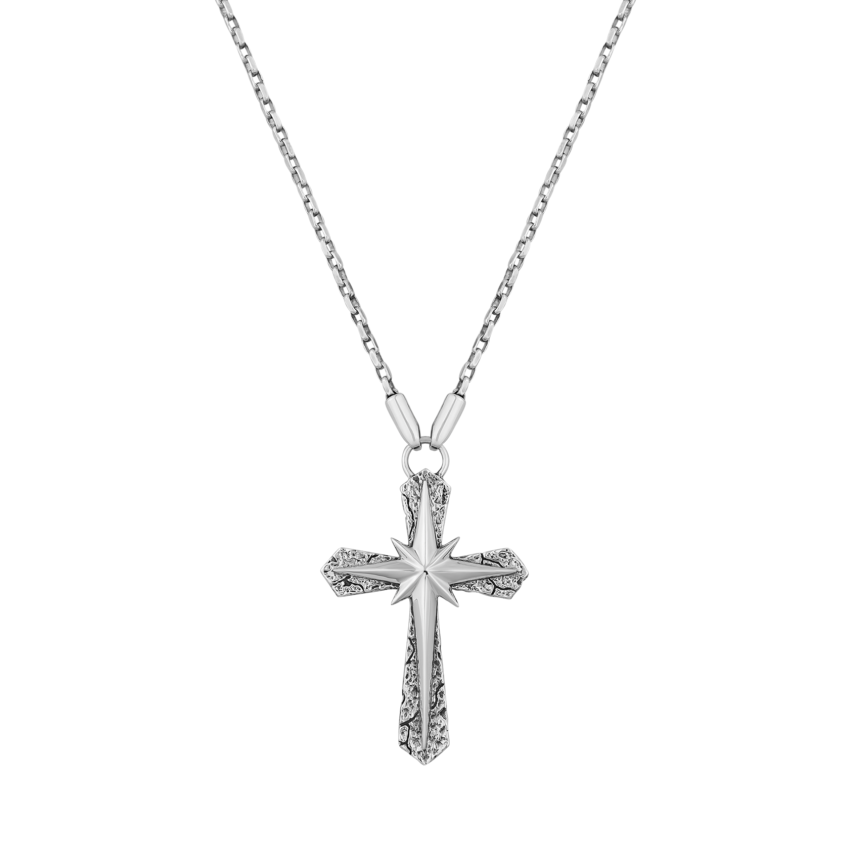 No matter where you find your guiding light, this North Star cross pendant is here to keep you on the straight and narrow.