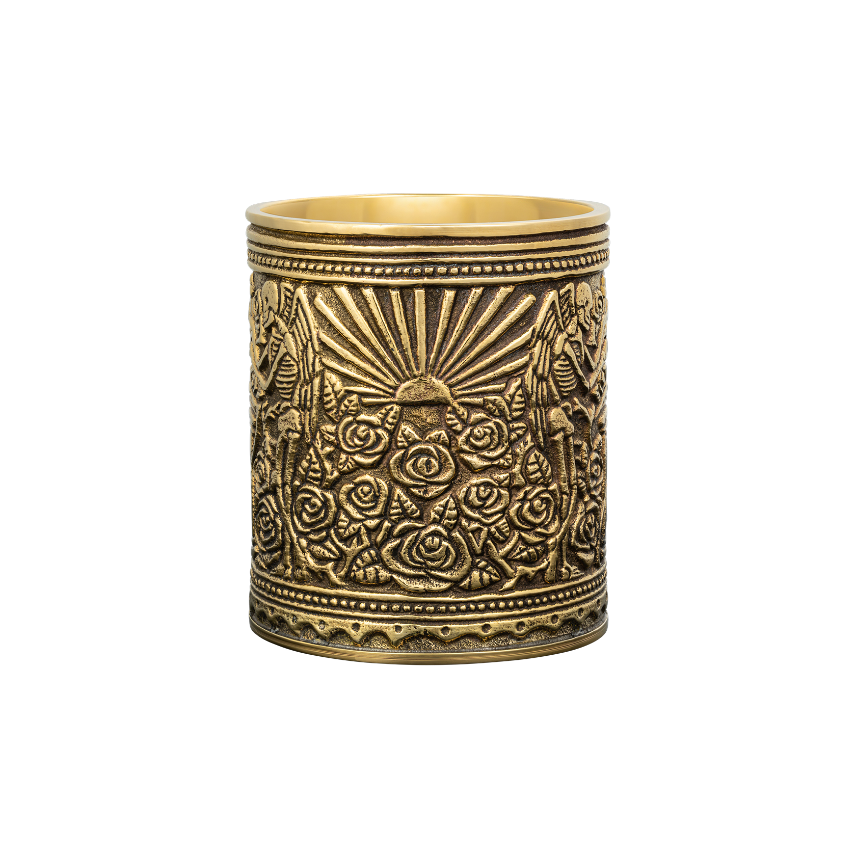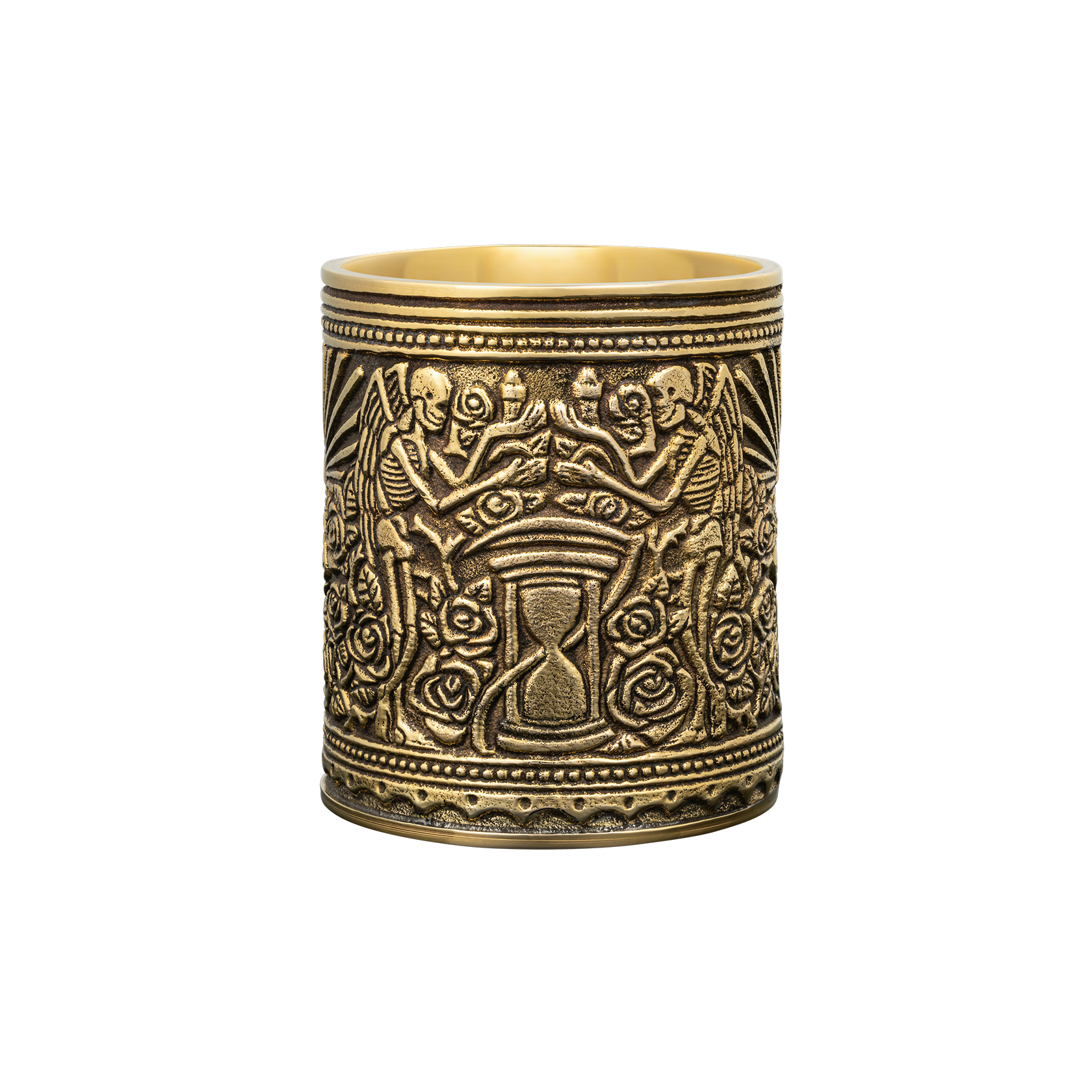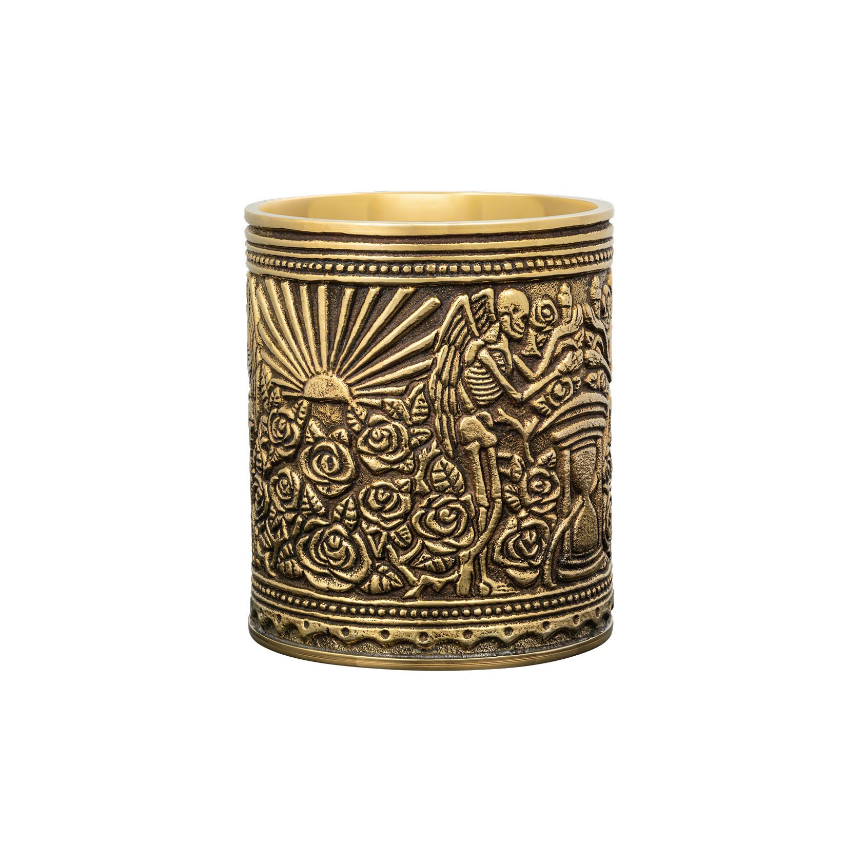It’s five o’clock somewhere. Pour yourself a stiff one and kick off your boots with this one of a kind, hand-carved, solid brass cup.