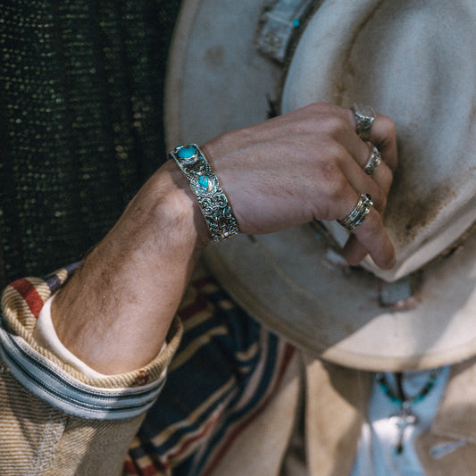 Jewelry should reflect the man wearing it. Our men's designer bracelets blend texture, symbolism, and craftsmanship. From oxidized silver finishes to turquoise inlays and beaded accents, every link and contour is deliberate.