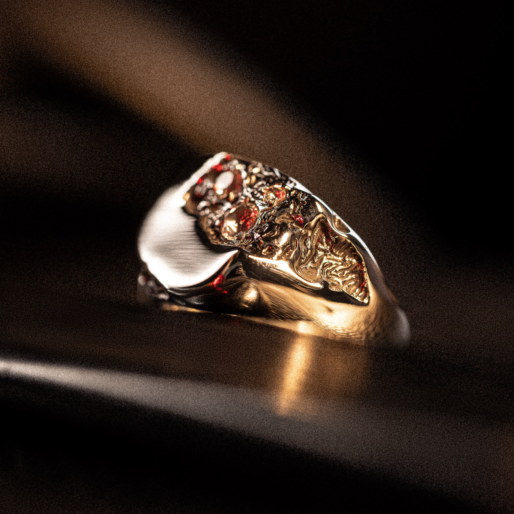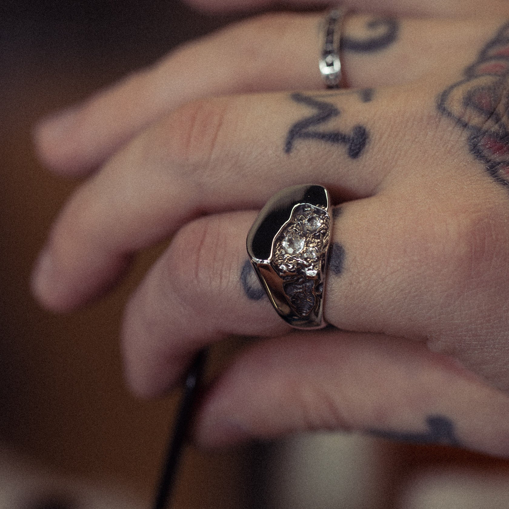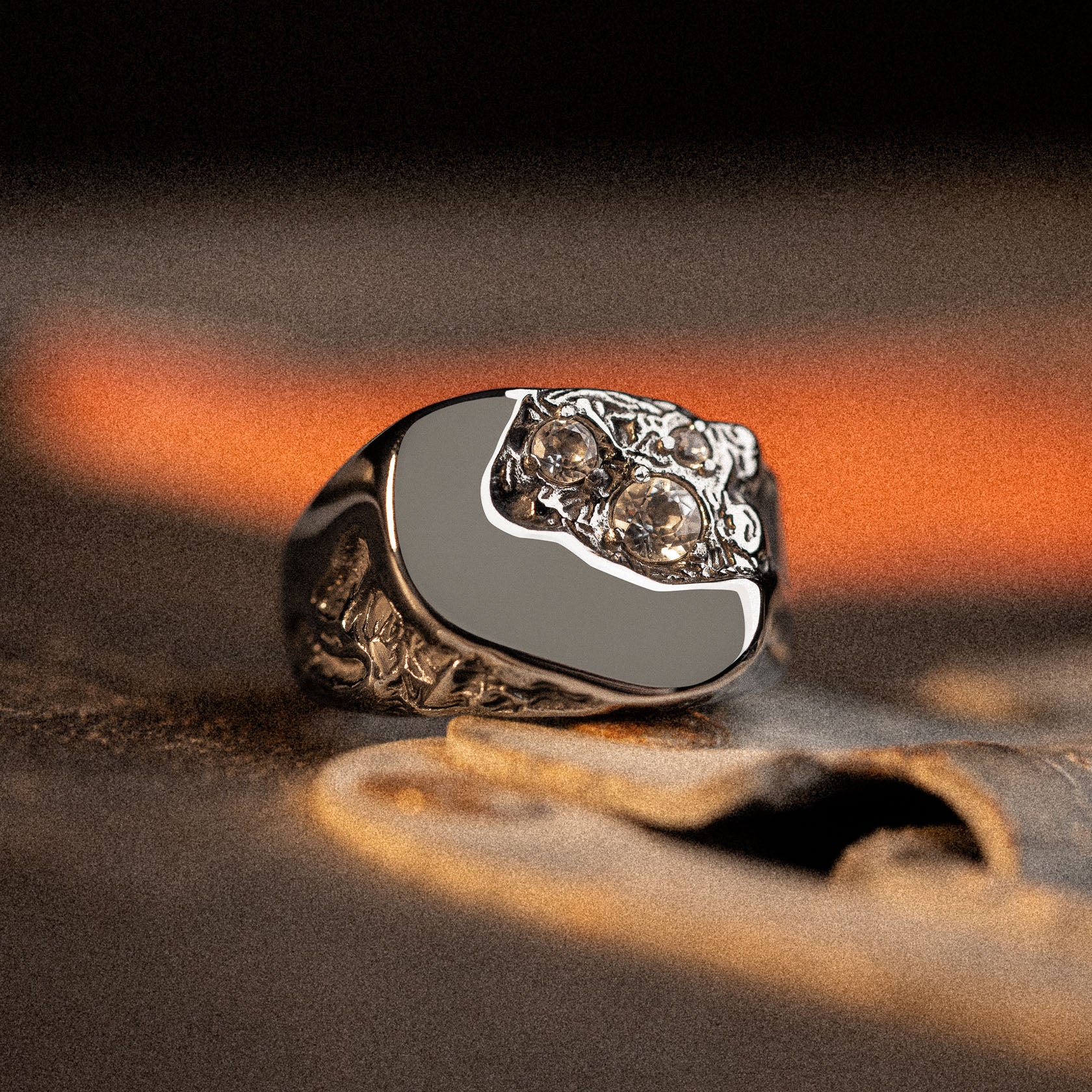 Like metal fresh from the forge, the Meltdown ring is a nod to creation through fire. With a molten design and clear Topaz stones beneath its surface, this piece is as raw as it is refined. Wear it as a reminder of transformation born from intense heat, shaped by fire.