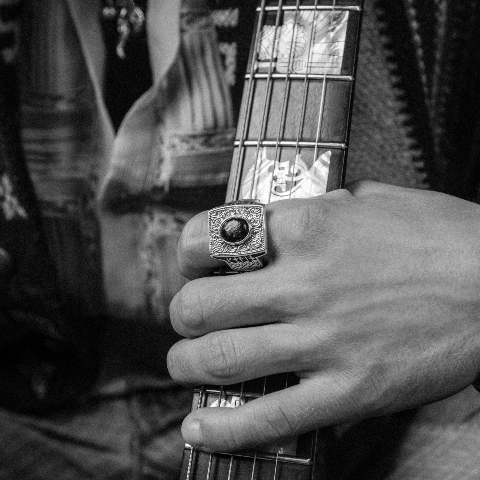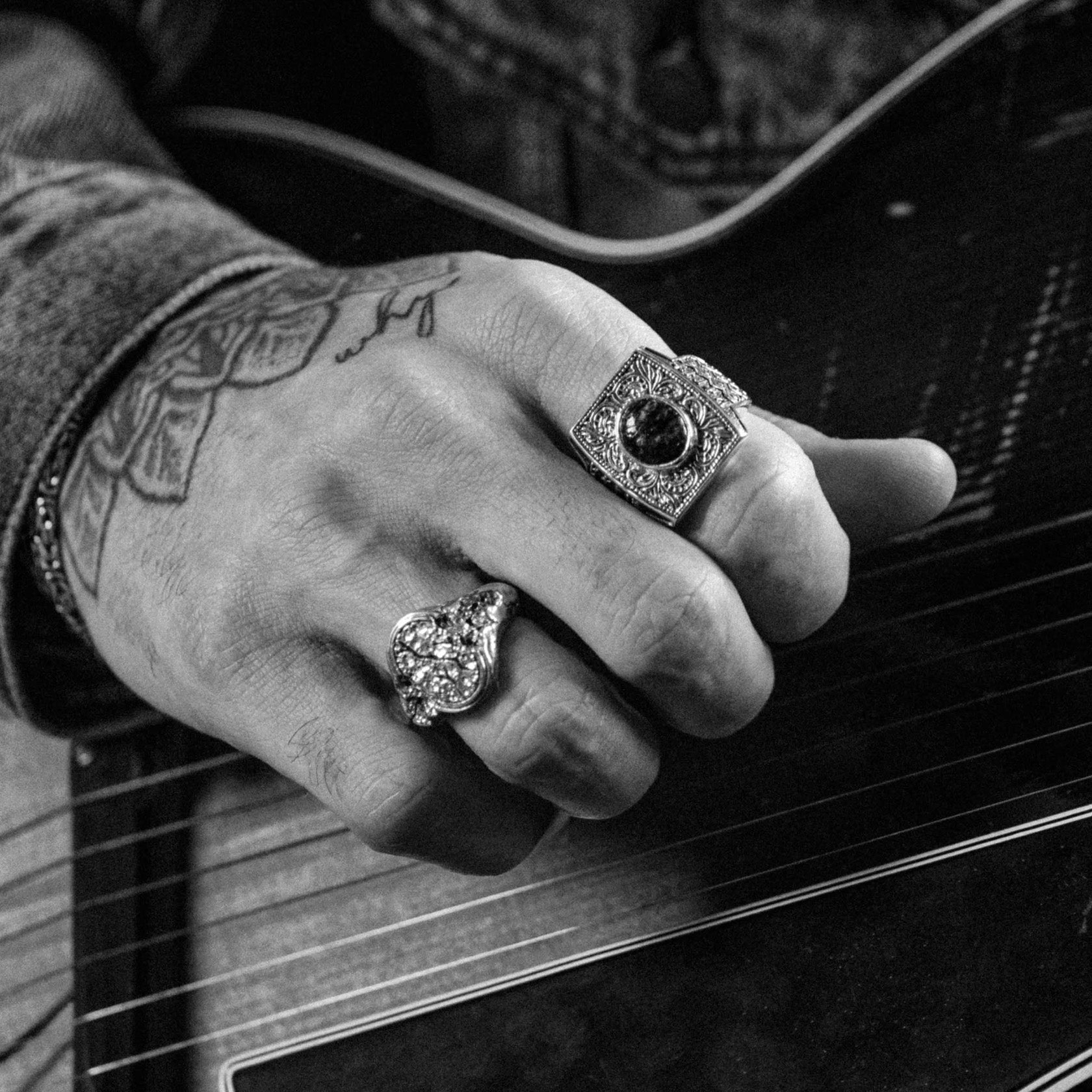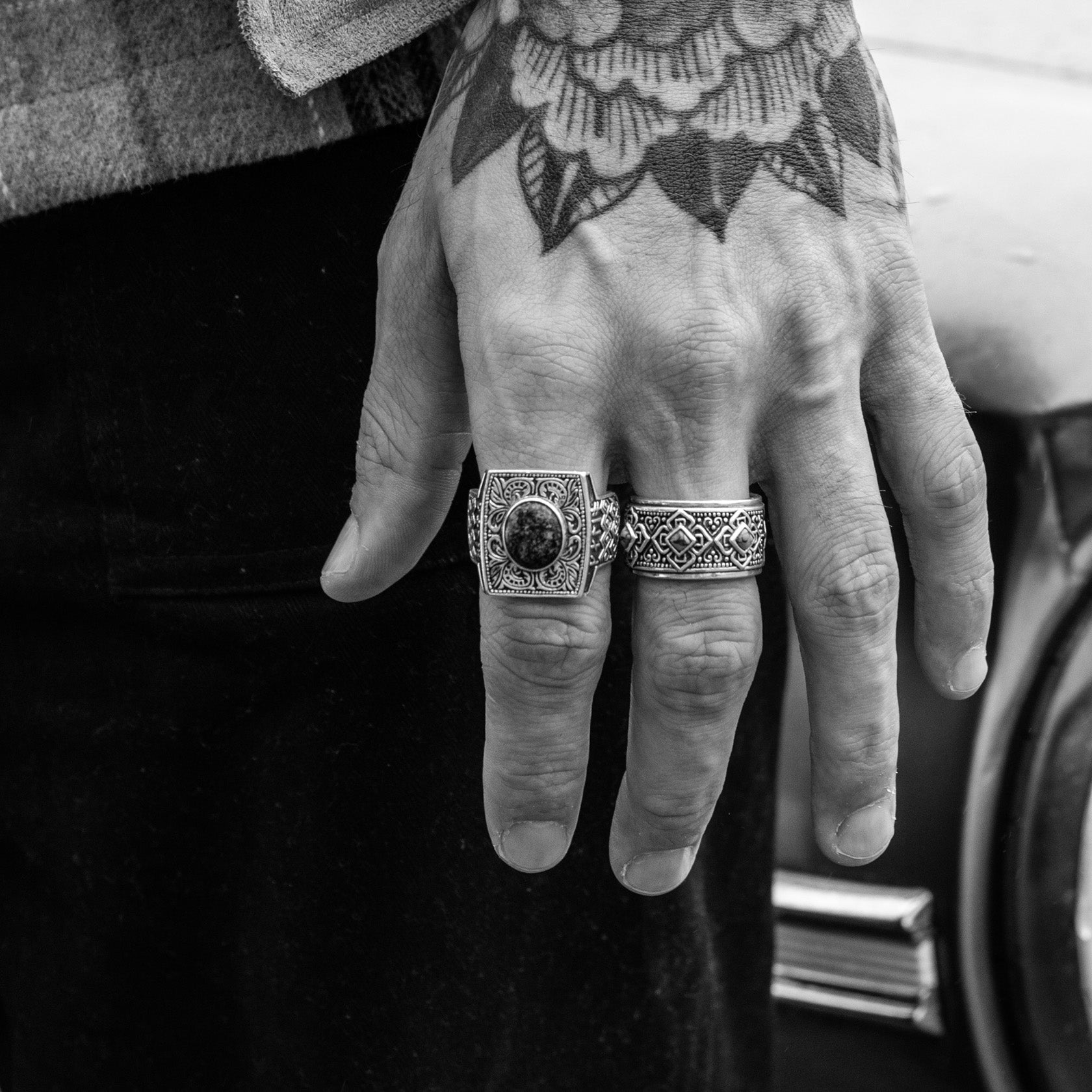 Designed in collaboration with JJ Julius Son of KALEO, the Rune is adorned with traditional Icelandic lettering and a geometric pattern designed to resemble the basalt rock structures found scattered across the vast northern country. Finished off with a single powerful Basalt stone, this ring is a symbol of the nation's great mystery and beauty.