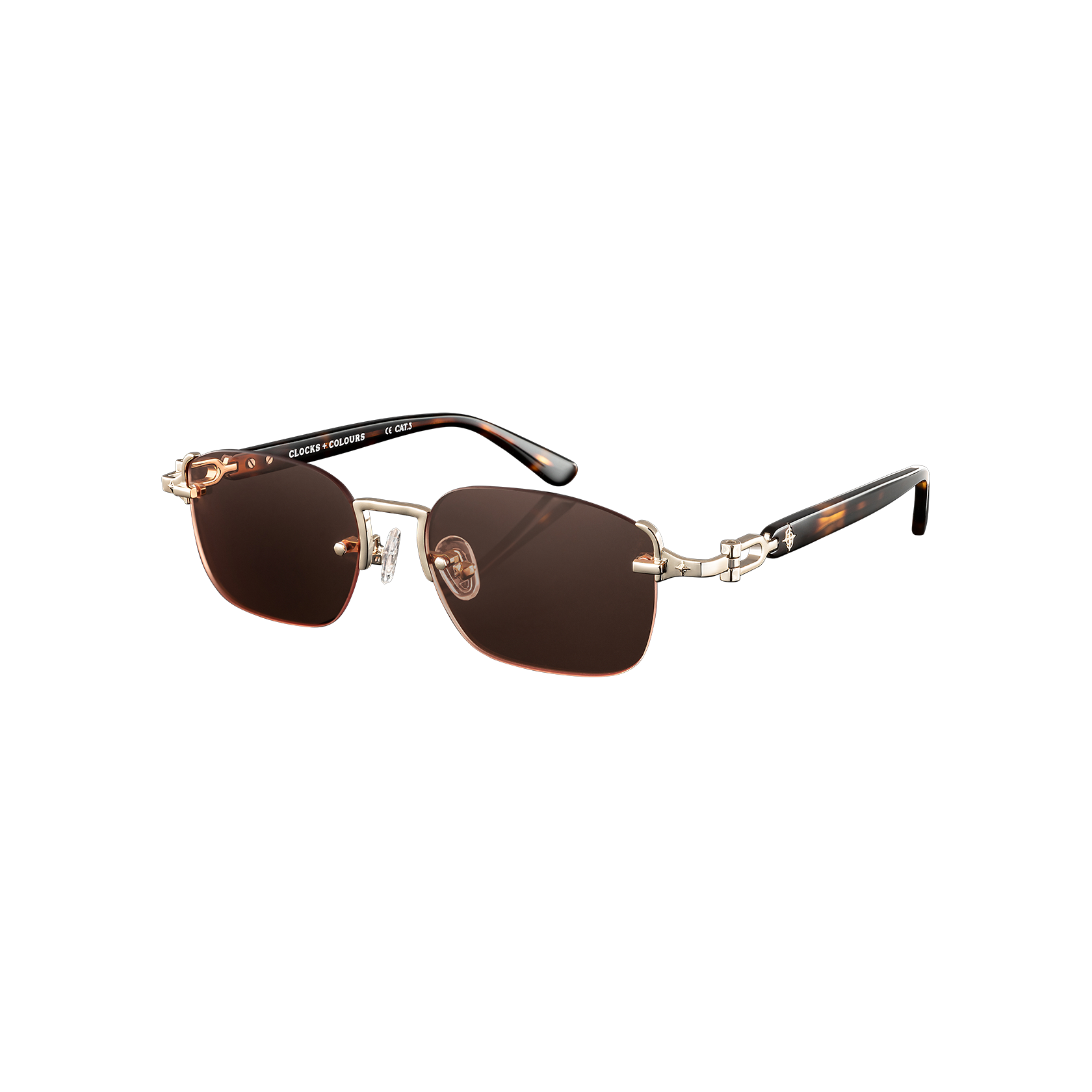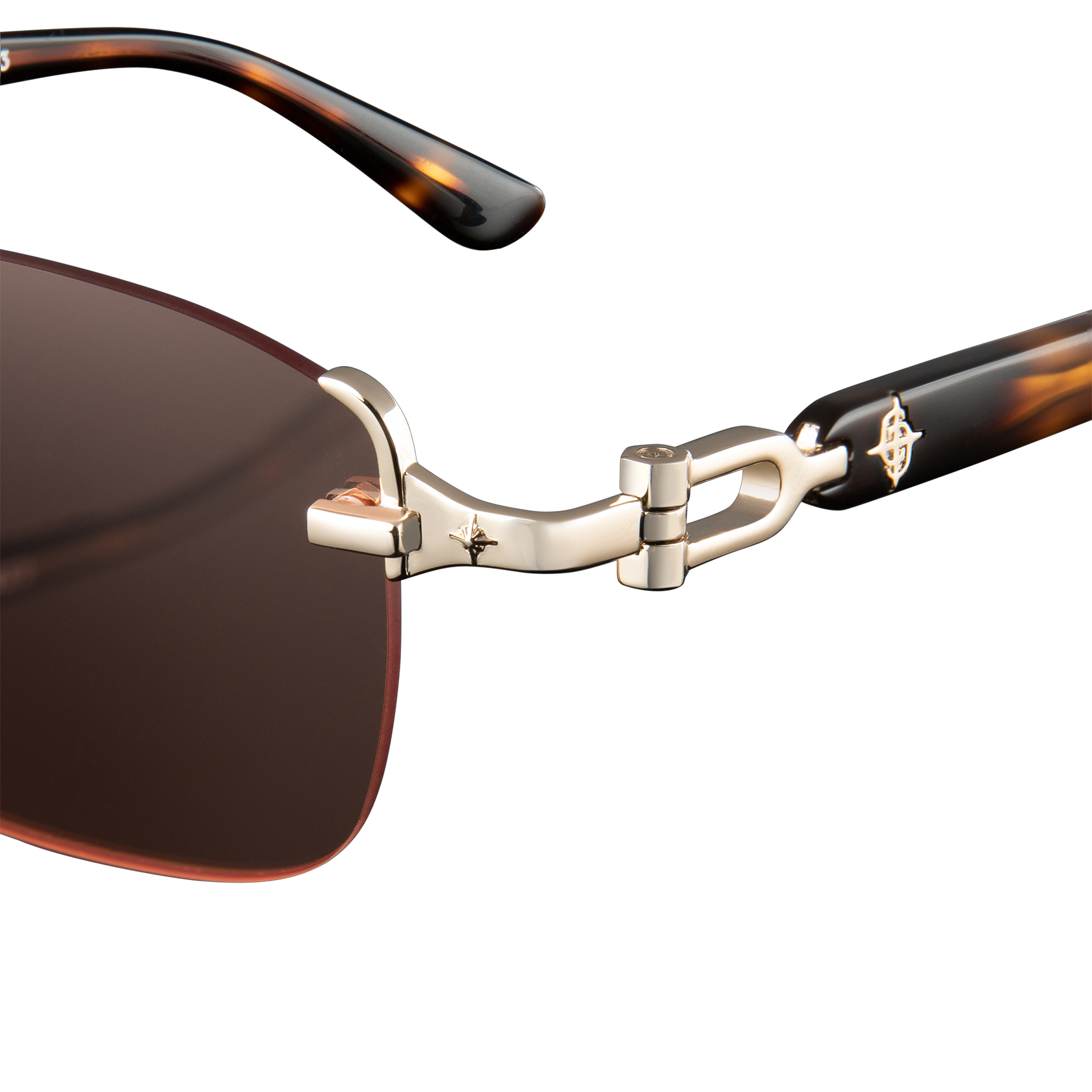 German-engineered three-barrel hinges. Biodegradable acetate construction. 100% recycled stainless steel hardware and detailing. Branded hard-case included. Tortoise shell acetate frame with non-polarized amber nylon lenses. Polished gold plated stainless steel hardware. Branded hard-case included.