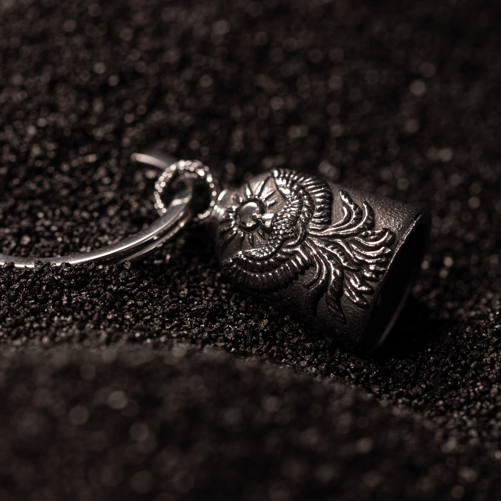 The phoenix carved into its surface isn’t just breaking through metal. It’s rising toward the sun, pulling good fortune into every mile ahead. Hang it low and let it catch the wind. Let it ring for safe roads, open skies, and the rare kind of luck that grows when you give it away, or if you’re feeling less traditional, when you give it to yourself.