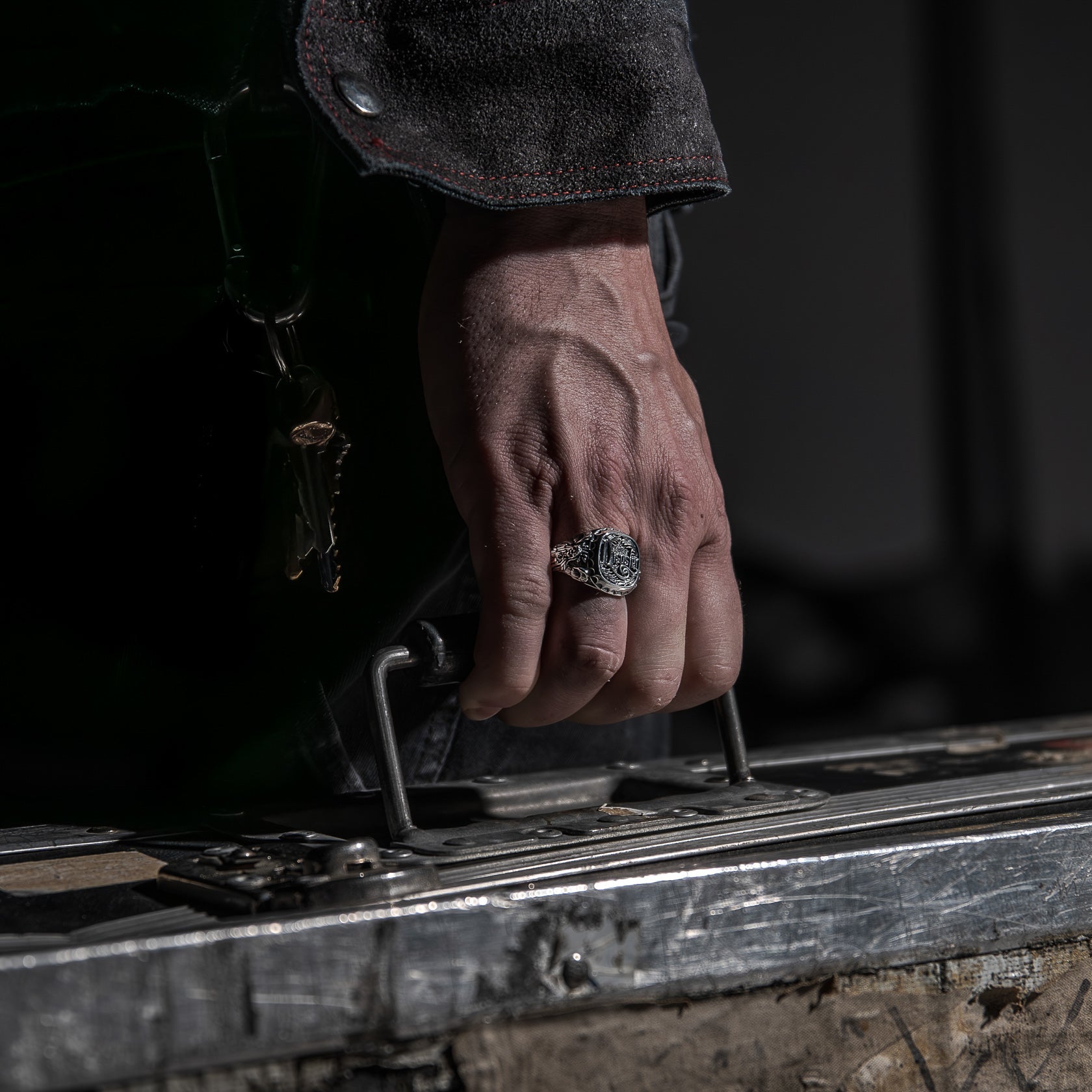 Forged in the spirit of southern grit and relentless energy, this ring captures the raw, unapologetic essence of Maylene and the Sons of Disaster. Crafted from solid sterling silver with bold detailing that echoes the band’s fierce sound, it's more than a piece of jewelry—it's a symbol of resilience and the unyielding will to stand your ground. Whether on stage or off, this ring is for those who live life loud and refuse to back down.