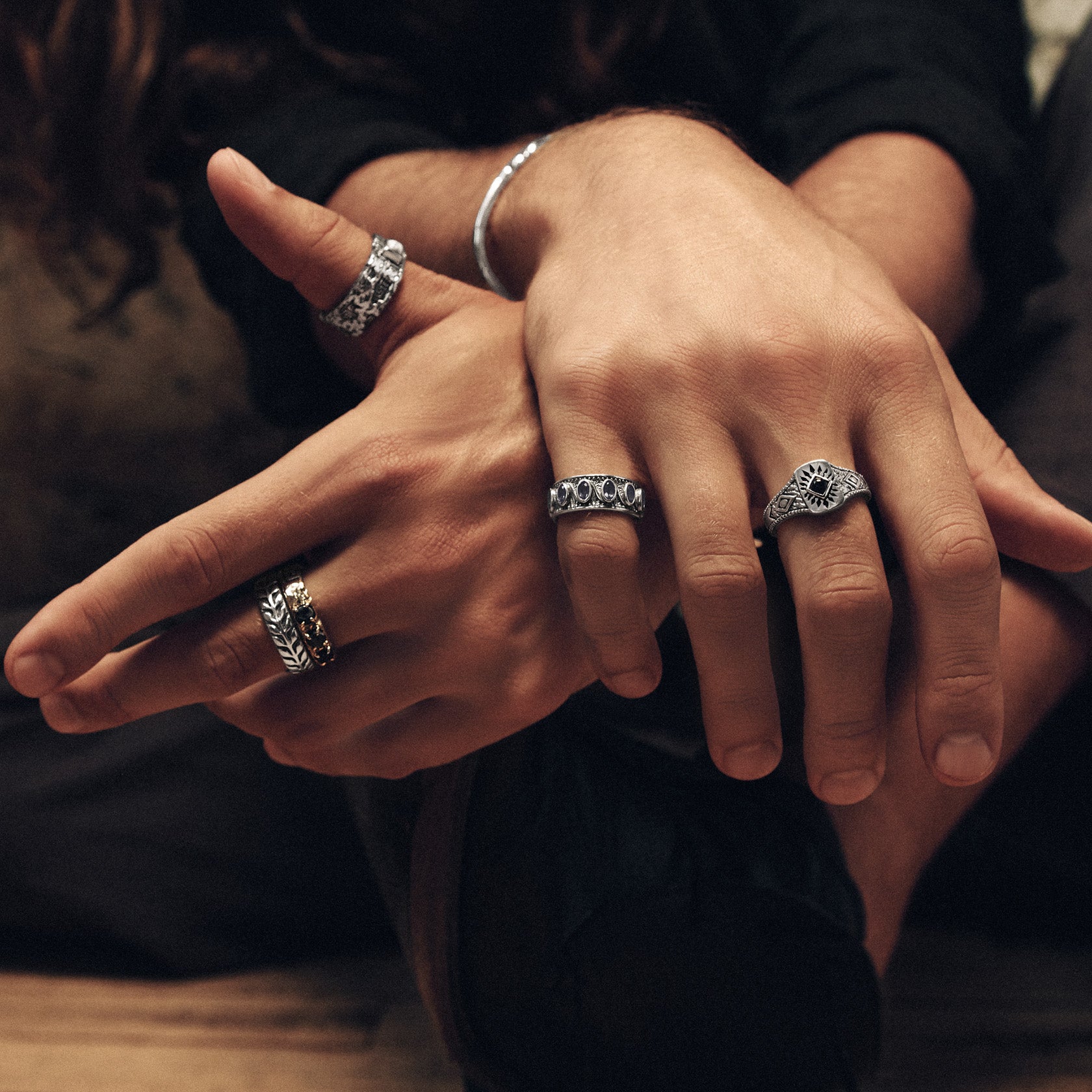 Our jewelry is cast from .925 sterling silver and surgical-grade stainless steel, rigorously tested for purity, strength, and longevity. We source real, ethically mined stones for their texture and natural character, setting each one by hand to lock in both beauty and durability.