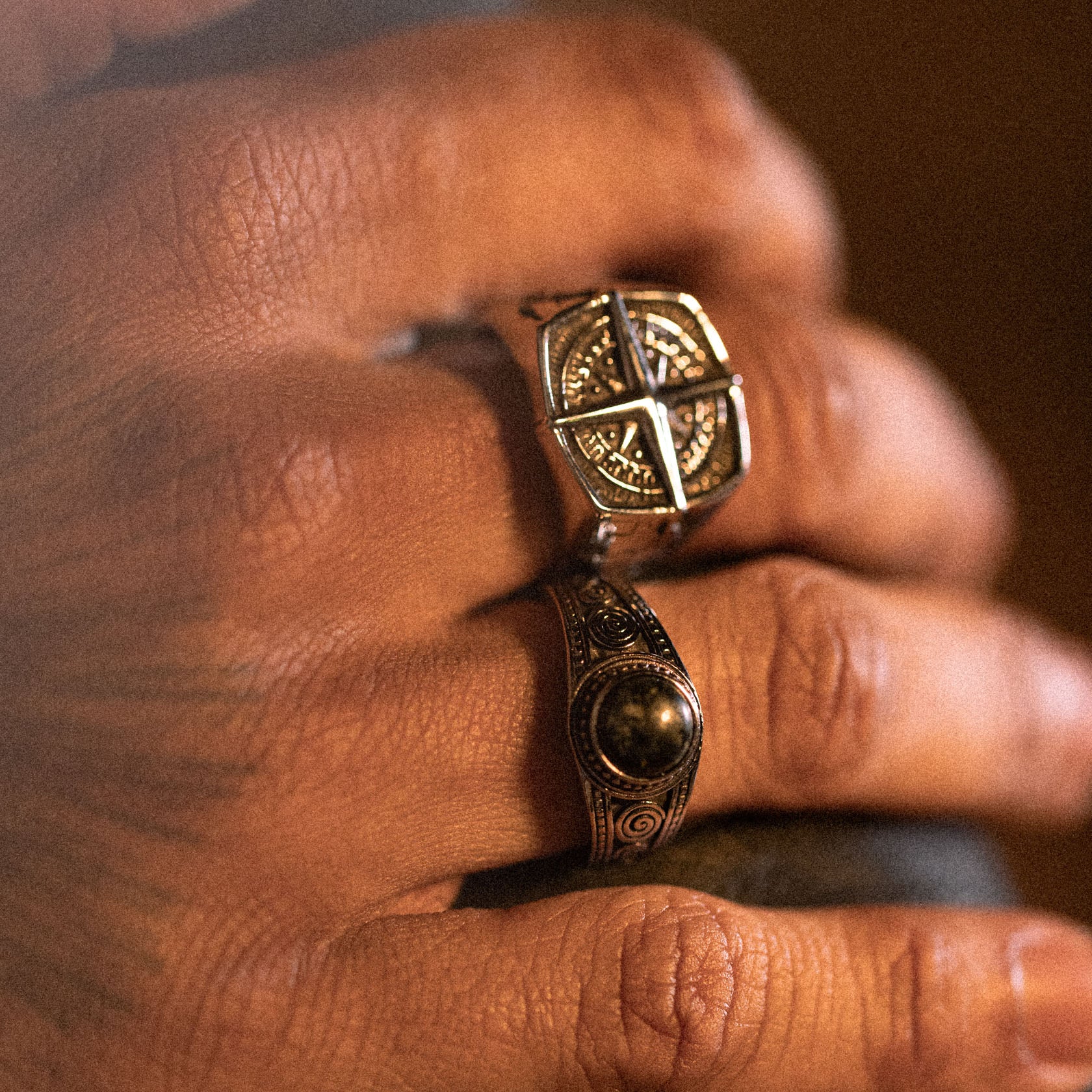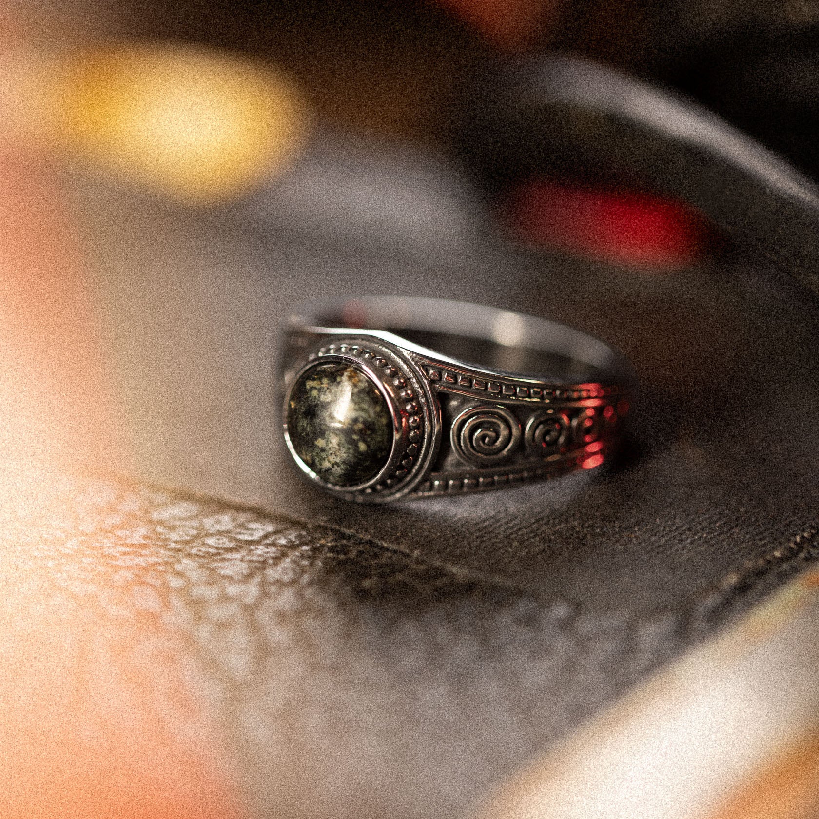 Real wisdom doesn’t come without struggle. The Socrates ring, featuring Kambaba Jasper on a stainless steel band, is for those willing to wade into the darkness to learn. It’s not about easy answers; it’s about finding what’s real.