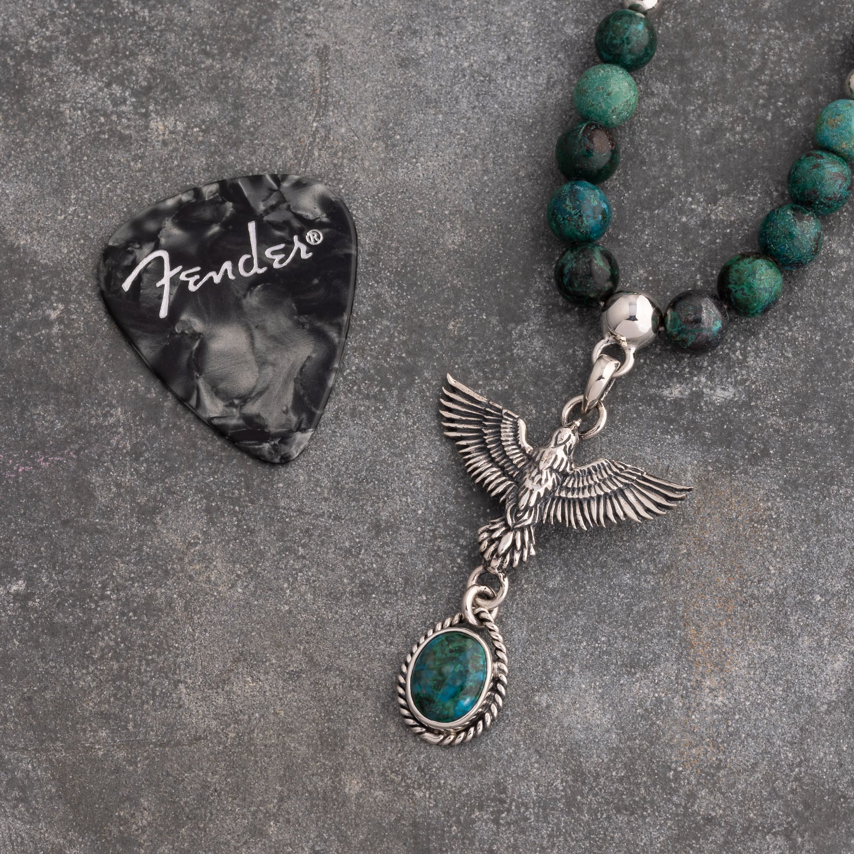 Lovely necklace. The eagle is a bit too small for me and the stone doesnt balance well in the middle, overall its a unique must have piece.