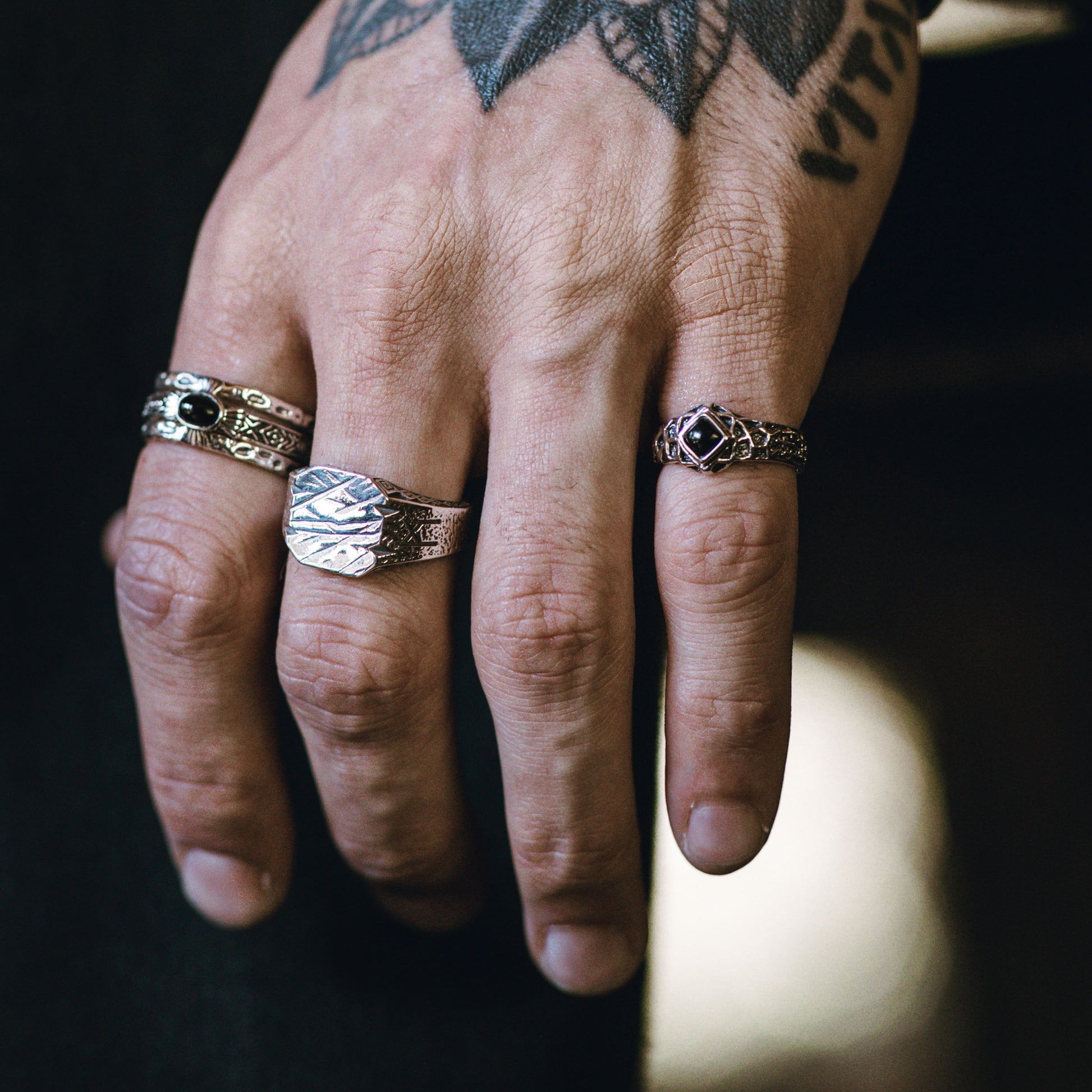 Our jewelry is cast from .925 sterling silver and surgical-grade stainless steel, rigorously tested for purity, strength, and longevity. We source real, ethically mined stones for their texture and natural character, setting each one by hand to lock in both beauty and durability.
