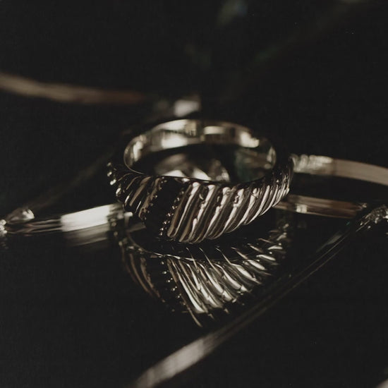 Sterling silver is 92.5% pure, strengthened with subtle alloys to last a lifetime. Bright when polished and darkened by patina over time, it evolves with the way you wear it. Lightweight yet durable, it is a metal that withstands daily use while carrying the permanence that turns jewelry into heirloom.