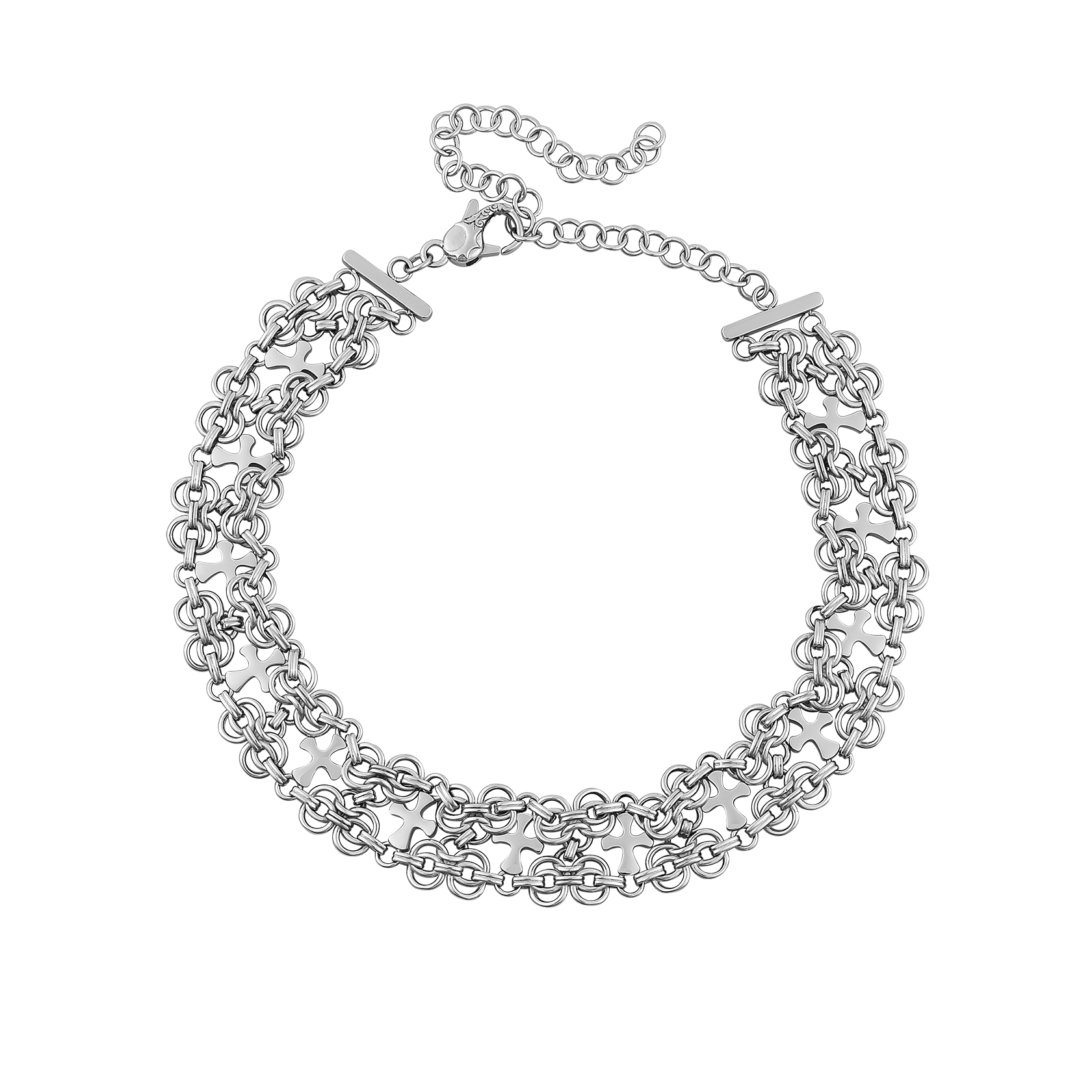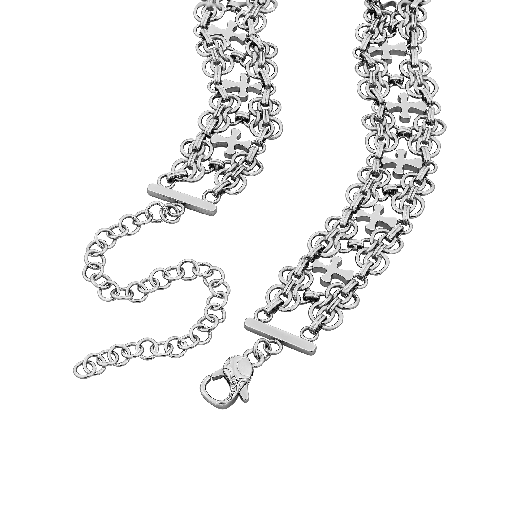 Stainless steel. 34.5cm (13.5") chain. Can be lengthened by up to 13.5cm using sizing rings for up to 48cm (18.8") length.