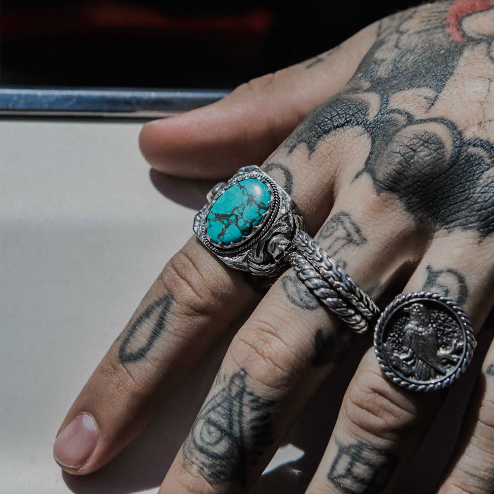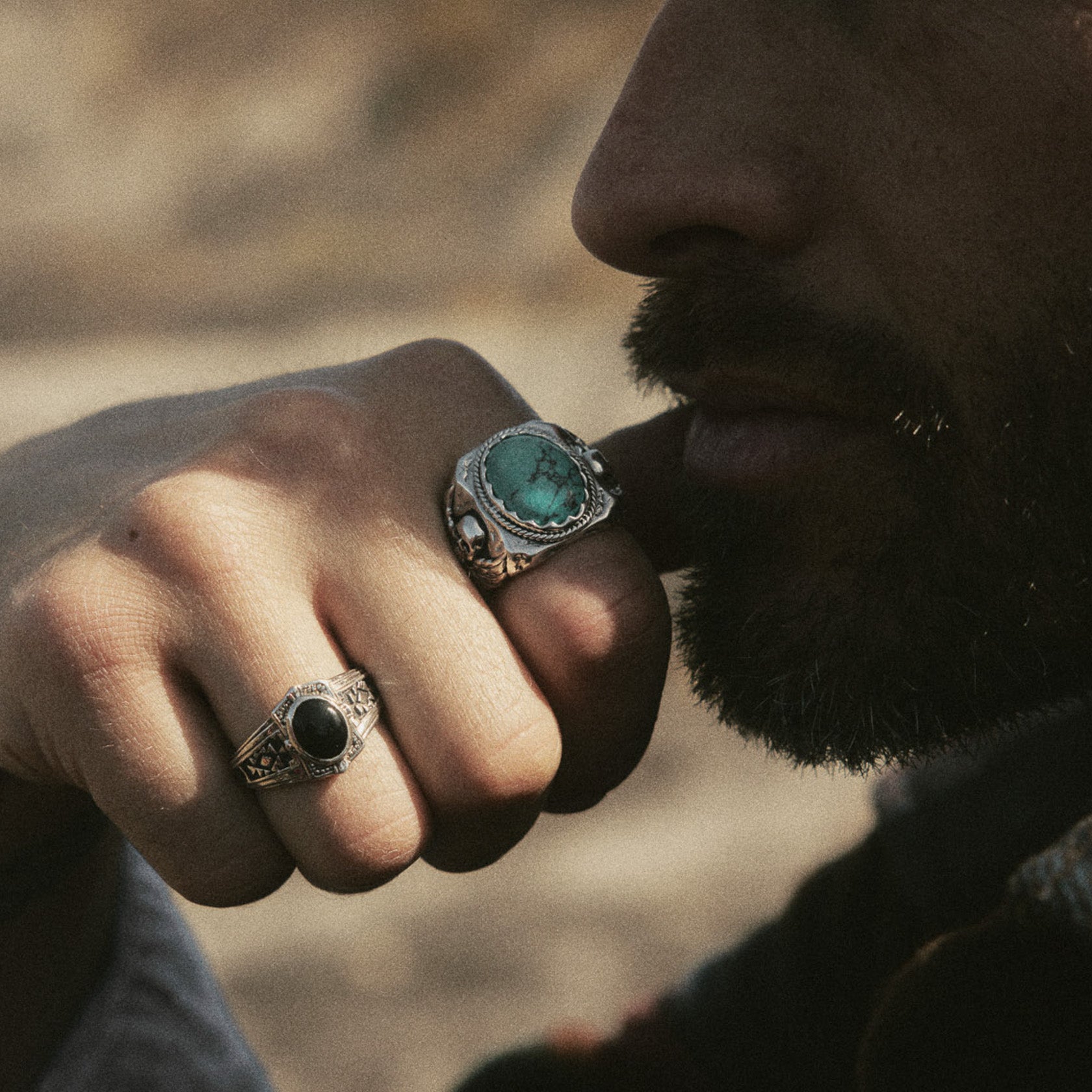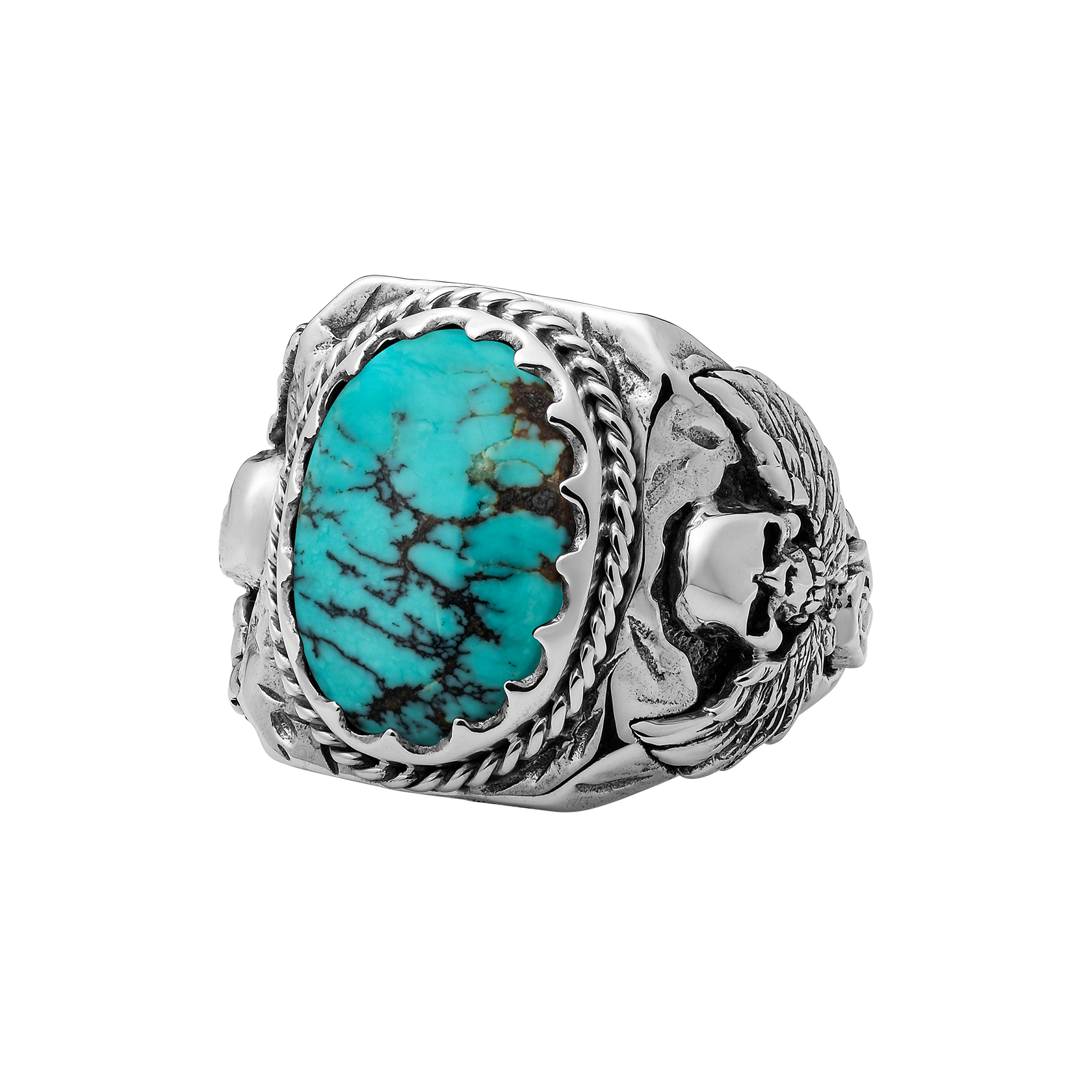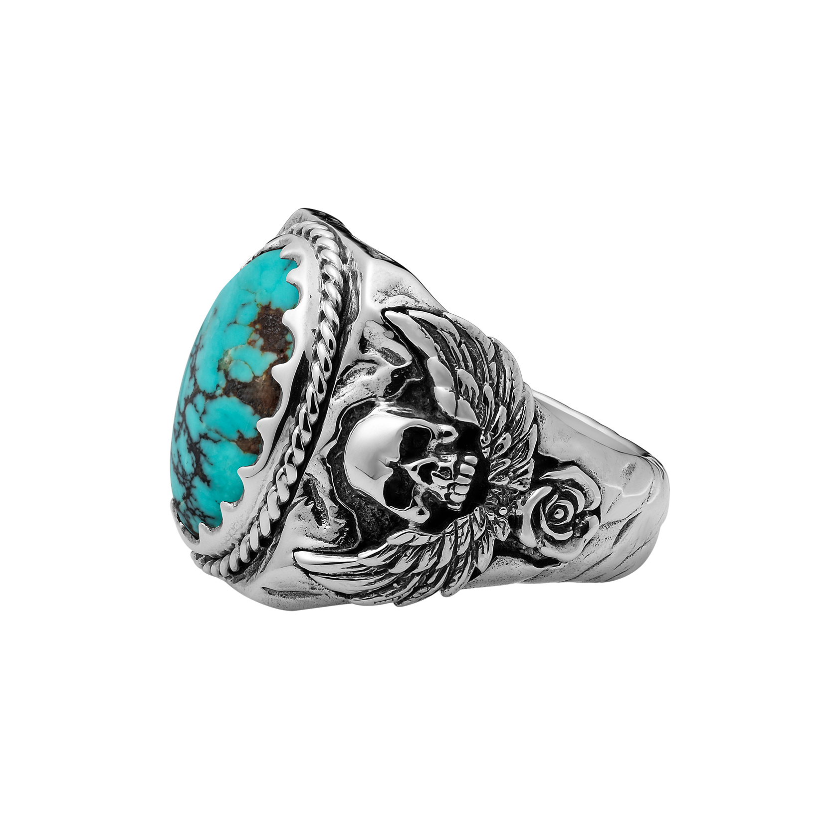 Throughout history, turquoise has been associated with mortality. It was used when decorating the world's most impressive tomb, the Taj Mahal, and when creating King Tut’s death mask. Ancient Persians wore it as protection against death, while the Aztecs inlaid it in the skulls of their fallen leaders. It has been used as a holy stone, and to bring immortality. The Spectre packs all this power into a ring worthy of accompanying you all the way to the afterlife.