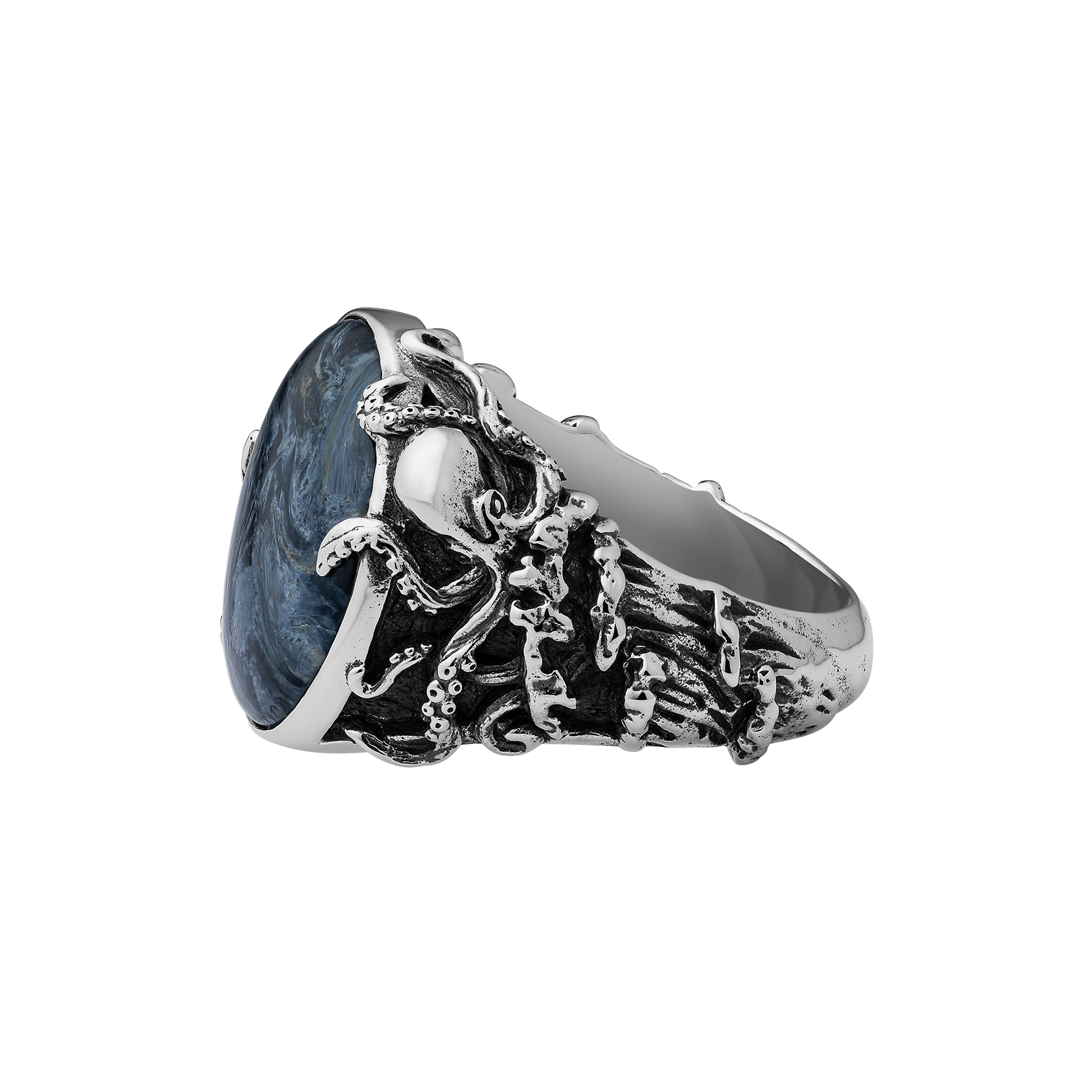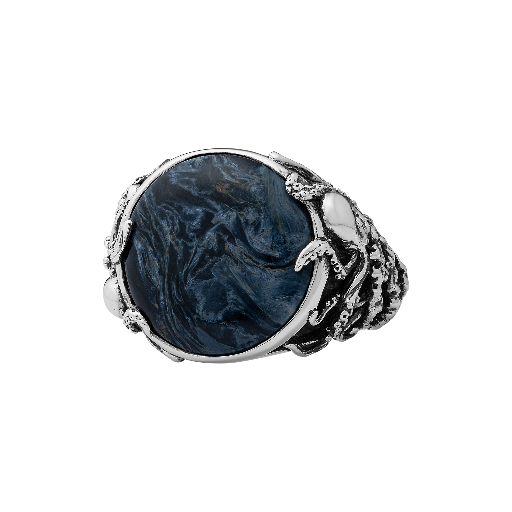 They don't call Blue Pietersite the "Tempest Stone" for nothin' — with layers of dark blue that cascade like raging waves beneath its surface, a storm is brewing deep within each stone. Finished with a giant squid on each side, the Squall packs all the power of a hurricane.