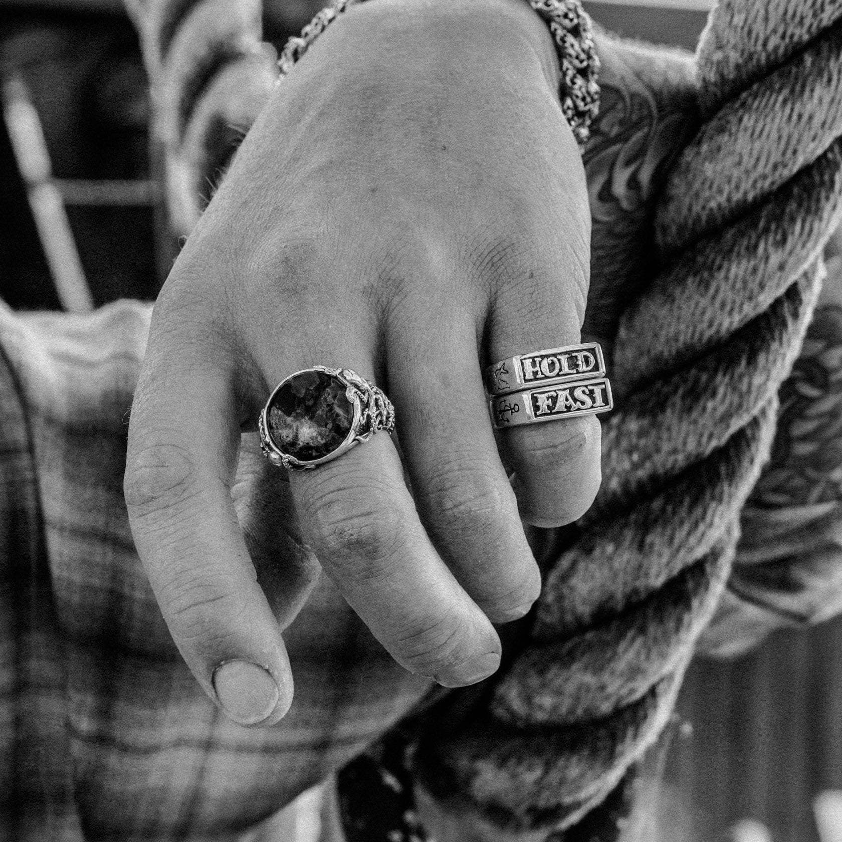 Our jewelry is cast from .925 sterling silver and surgical-grade stainless steel, rigorously tested for purity, strength, and longevity. We source real, ethically mined stones for their texture and natural character, setting each one by hand to lock in both beauty and durability.